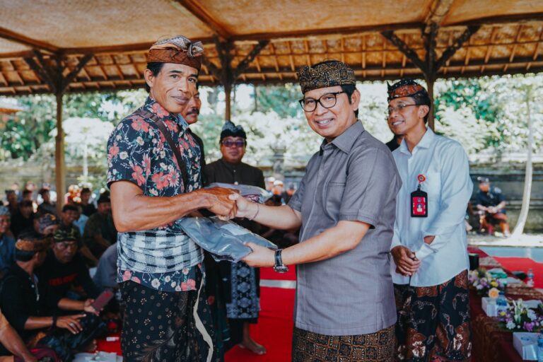 FORUM Kedilan Bali – Bentuk keberpihakan Pemkab Badung menjaga dan melestarikan subak sebagai salah satu bentuk kearifan lokal yang ada di Bali khususnya di Kabupaten Badung, Sekda Adi Arnawa menghadiri pembahasan program kerja subak se-Badung sekaligus secara simbolis menyerahkan pakaian kepada Pekaseh dan Pangliman di Balai Subak Lepud, Pesedahan Yeh Sungi Desa Baha Kecamatan Mengwi, Sabtu (11/3).