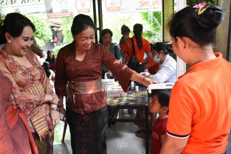 FORUMKeadilanbali.com – Ketua Tim Penggerak PKK Kota Denpasar Ny. Sagung Antari Jaya Negara bersama Ketua GOW Kota Denpasar Ny. Ayu Kristi Arya Wibawa dan Ketua DWP Kota Denpasar Ny. Ida Ayu Widnyani Wiradana membuka Posyandu Paripurna di Banjar Mertha Buana, Kelurahan Padangsambian, Denpasar Barat, Kamis (23/3).