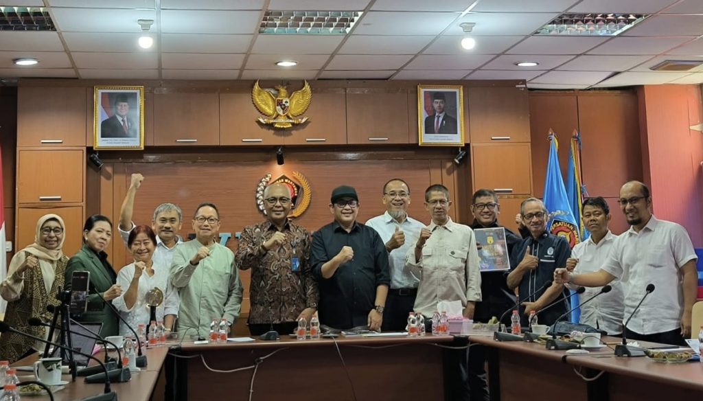 FOTO BERSAMA – Ketua Persatuan Wartawan Indonesia (PWI) Pusat Akhmad Munir didamping Ketua Seksi Wartawan Olahraga Indonesia (Siwo) Suryansyah dan pengurus PWI lainnya foto bersama usai meluncurkan Siwo Award 2025 di Sekretariat PWI Pusat, Jakarta, Selasa (4/11/2025). (foto : ist)