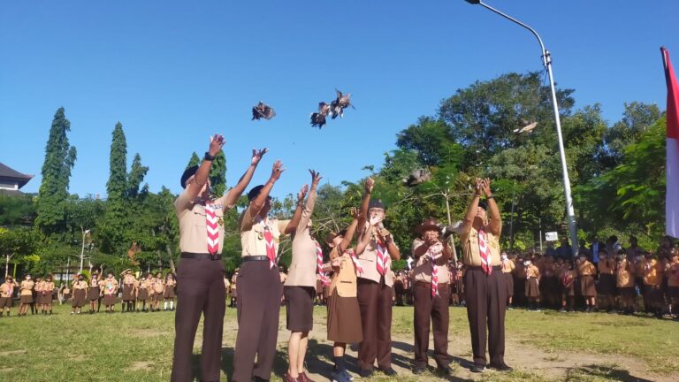 FORUM Keadilan Bali – Memeriahkan dan memperingati Hari Kepanduan Dunia ke-166, Kwartir Cabang Gerakan Pramuka Denpasar menyelenggarakan Pesta Siaga diikuti 400 orang Pramuka Siaga se-Kwarcab Denpasar di Lapangan Taman Kota Lumintang Denpasar, Rabu (22/2).