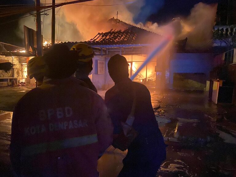 FORUM Keadilan Bali – Rumah usaha Depot Bu Pur dan Karunia Pool milik Nasin, Jln. By Pas Ngurah Rai (selatan Polsek Densel) Banjar Batan Poh, Desa Sanur Kaja, Denpasar Selatan ludes terbakar Rabu (8/11) pukul 00.40 Wita.