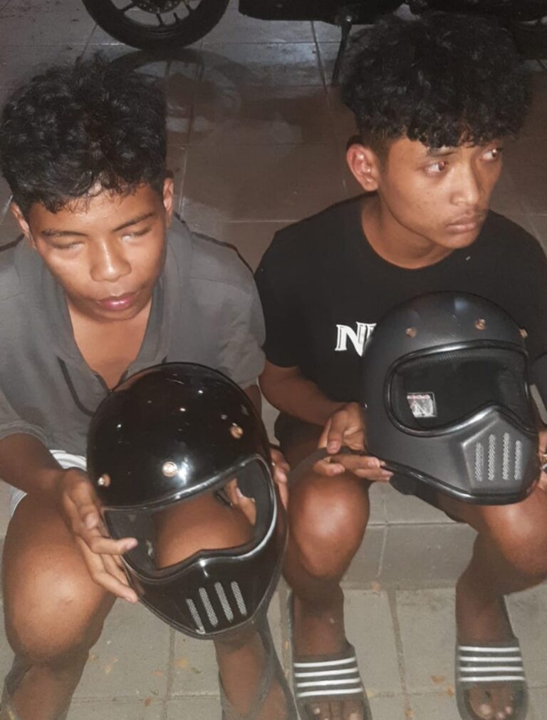 FORUM Keadilan Bali – Satpam PT Asta Nadi Karya Utama menangkap dua pencuri helm di parkiran SMA Negeri 9 Denpasar, Senin (28/8).