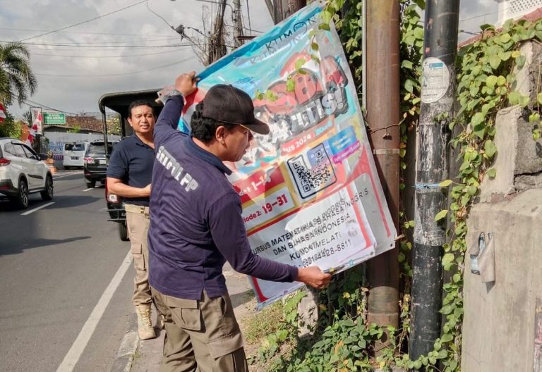 FORUMKEADILANBali.com – Menjaga estetika kota, Satpol PP Kota Denpasar melalui Bidang Ketertiban Umum dan Ketentraman Masyarakat (KUKM) memberangus baliho, spanduk dan pamflet tanpa izin dipasang pada fasilitas umum serta kadaluarsa, Rabu (14/8).