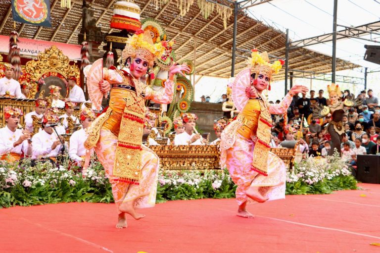 FORUM Keadilan Bali – Duta seni Kota Denpasar, Seka Semara Pegulingan Dharma Winangun, Banjar Pemalukan, Kelurahan Peguyangan, Denpasar Utara menampilkan Tari Legong Kuntul pada Pesta Kesenian Bali (PKB) ke-44 di Kalangan Ayodya, Taman Budaya Art Center, Selasa (5/7).