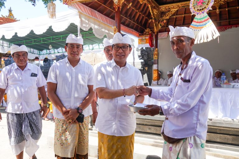 FORUMKeadilanbali.com – Rampungnya pembangunan Pura Sang Hyang Landu Sekda Wayan Adi Arnawa menghadiri sekaligus Ngupasaksi Mendem Pedagingan Karya Ngenteg Linggih, Pedudusan Alit, Tawur Wraspati Kalpa di Pura Sang Hyang Landu dan memberikan paraf di prasasti, Banjar Gelagah Puwun Desa Kekeran, Mengwi Senin (15/4).