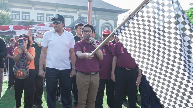 FORUM Keadilan Bali – Sekretaris Daerah (Sekda) Kabupaten Badung I Wayan Adi Arnawa mewakili Bupati Badung melepas jalan santai serangkaian HUT ke-77 PGRI dan Peringatan Hari Guru Nasional 2022 dengan tema ”Guru Bangkit, Pulihkan Pendidikan, Indonesia Kuat, Indonesia Maju”, di Puspem Badung, Minggu (20/11).