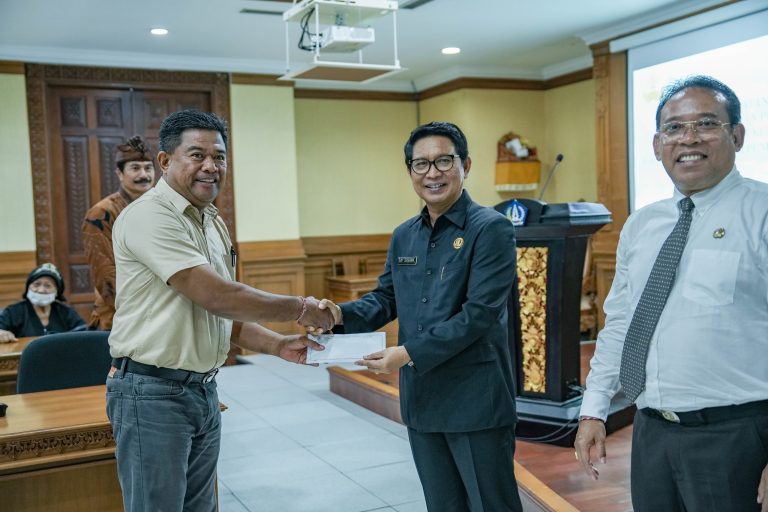 FORUMKeadilanbali.com – Sekretaris Daerah Kabupaten Badung I Wayan Adi Arnawa selaku Ketua Dewan Pengurus KORPRI Badung menyerahkan santunan kepada anggota KORPRI Badung telah purna tugas (pensiun) sebanyak 25 orang dan sumbangan dana kematian kepada 3 orang diwakili ahli waris di Ruang Kriya Gosana, Puspem Badung, Kamis (25/4).