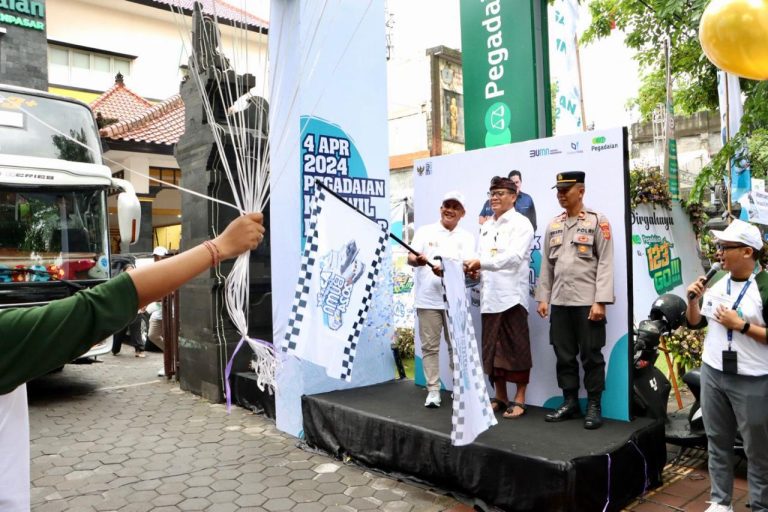 FORUMKeadilanbali.com – Sekda Kota Denpasar I.B Alit Wiradana melepas mudik bersama BUMN serangkaian Idul Fitri 1445 Hijriah digelar PT Pegadaian Kantor Wilayah VII ditandai pengibasan bendera di Kantor Pegadaian Jalan Raya Puputan, Denpasar, Kamis (4/4).