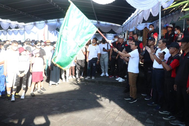 FORUM Keadilan Bali – Sekretaris Daerah (Sekda) Kabupaten Badung I Wayan Adi Arnawa melepas peserta jalan sehat serangkaian HUT ke-22 Koperasi Sari Sedana Artha (KSSA), di Natar Pura Gede Luhur Batu Ngaus Desa Wisata Cemagi, Minggu (23/10).