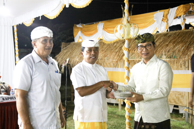FORUM Keadilan Bali – Komitmen Pemerintah Kabupaten Badung melestarikan adat agama, tradisi, seni dan budaya, Sekretaris Daerah (Sekda) Kabupaten Badung I Wayan Adi Arnawa menghadiri Karya Atma Wedana dan Manusa Yadnya di Parkiran Pura Kahyangan Dalem Desa Adat Ayunan, Kecamatan Abiansemal, Rabu (14/6).