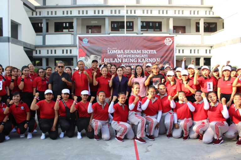 FORUM Keadilan Bali – Menyemarakan Bulan Bung Karno V, Kelurahan Peguyangan menggelar lomba Senam Indonesia Cinta Tanah Air (Sicita) diikuti 13 tim perwakilan dari banjar-banjar di wilayah Peguyangan, Minggu (25/6) digelar di halaman SMK Dwijendra.
