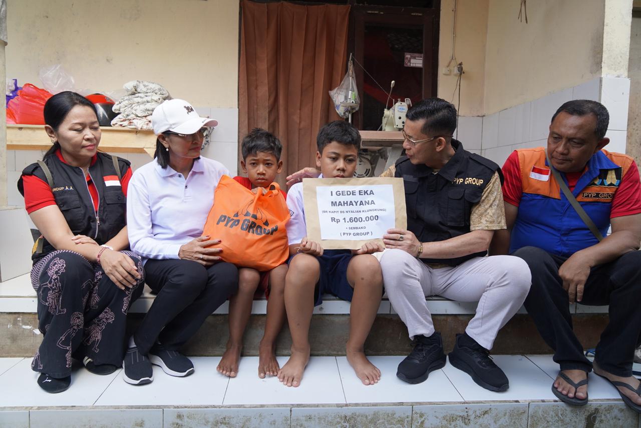 SEMARAPURA, FORUMKEADILANBali.com – Bupati Klungkung, I Made Satria bersama Ketua Tim Penggerak PKK Kabupaten Klungkung, Ny. Eva Satria dan Yayasan Peduli Yatim Piatu (PYP) Grup menyerahkan bantuan santunan sosial sekaligus memberi semangat kepada anak yatim piatu Gede Eka Mahayana di Desa Nyalian, Kecamatan Banjarangkan, Minggu (5/10/2025).