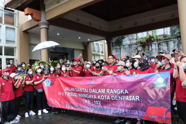 FORUM Keadilan Bali – Wali Kota Denpasar IGN jaya Negara melepas jalan sehat serangkaian memperingatan HUT ke-102 RSUD Wangaya Kota Denpasar, Sabtu (24/12).