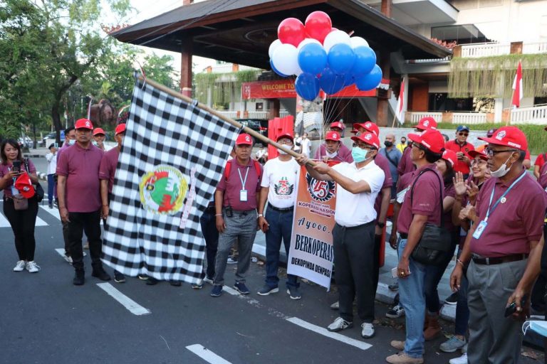 FORUM Keadilan Bali – Dalam rangka Peringatan Hari Koperasi ke – 75 Tahun 2022 di Kota Denpasar, Pemkot bersinergi dengan Dewan Koperasi Indonesia (Dekopin) Daerah Kota Denpasar mengadakan kegiatan jalan sehat dan donor darah, Minggu (24/7) di Taman Kota Lumintang Denpasar.