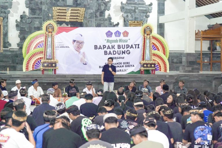 MANGUPURA, FORUMKEADILANBli.com – Bupati Badung I Wayan Adi Arnawa magendu wirasa dengan Seka Teruna Teruni (STT) Manik Giri Banjar Taman Griya dan tokoh masyarakat di Banjar Taman Griya, Jumat (21/3/2025).