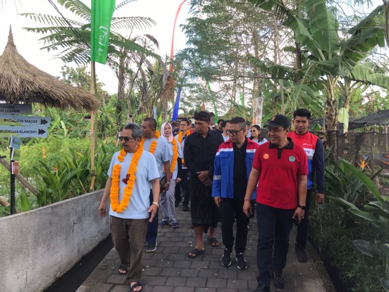 FORUM Keadilan Bali – Kepala Direktorat Pemulihan Kontaminasi dan Tanggap Darurat Limbah B3, Kementerian Lingkungan Hidup dan Kehutanan (Kemen LHK, Haneda Sri Mulyanto bersama tim Pertamina Patra Niaga DPPU Ngurah Rai, meninjau Kelompok Tani Uma Palak Lestari, Eko Wisata Subak Sembung, Kelurahan Peguyangan, Denpasar Utara, Sabtu (27/5).