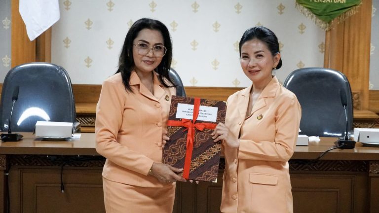 FORUMKEADILANBali.com – Dharma Wanita Persatuan (DWP) Kabupaten Badung serah terima jabatan dari pejabat lama Nyonya Putu Rasniathi Adi Arnawa kepada Plh. Ketua Dharma Wanita Persatuan Nyonya Oliviana Surya Suamba di Ruang Rapat Lt. III Balai Budaya Giri Nata Mandala, Puspem Badung, Jumat (6/9).