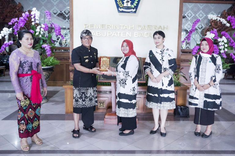 FORUM Keadilan Bali – Bupati Badung I Nyoman Giri Prasta didampingi Ketua TP PKK Badung Nyonya Seniasih Giri Prasta dan Kadis LHK I Wayan Puja menerima kunjungan Bupati Sleman, Daerah Istimewa Yogyakarta, Hj. Kustini Sri Purnomo, di Puspem Badung, Kamis (15/9).