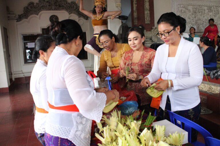 FORUM Keadilan Bali – Meningkatkan pemahaman makna upakara bagi masyarakat terutama wanita Hindu tentang filosofi dan makna banten sesuai sastra, Wanita Hindu Dharma Indonesia (WHDI) Kota Denpasar kembali melaksanakan pelatihan membuat banten ”Ayaban Tumpeng Pitu” di Banjar Tainsiat, Desa Dangin Puri Kaja, Denpasar Utara, Jumat (24/3).