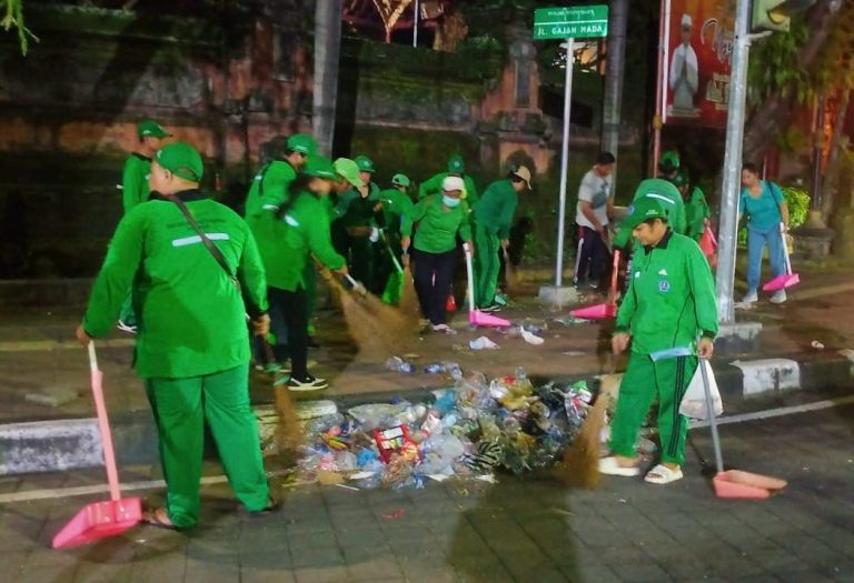 DENPASAR, FORUMKEADILANBali.com – Tim Dinas Lingkungan Hidup dan Kebersihan (DLHK) Kota Denpasar dengan sigap membersihkan sampah pasca pelaksanaan pawai/pengarakan Ogoh-ogoh serangkaian malam pangerupukan Nyepi Caka 1947 di seluruh wilayah Kota Denpasar, Jumat (27/3/2025) dini hari.