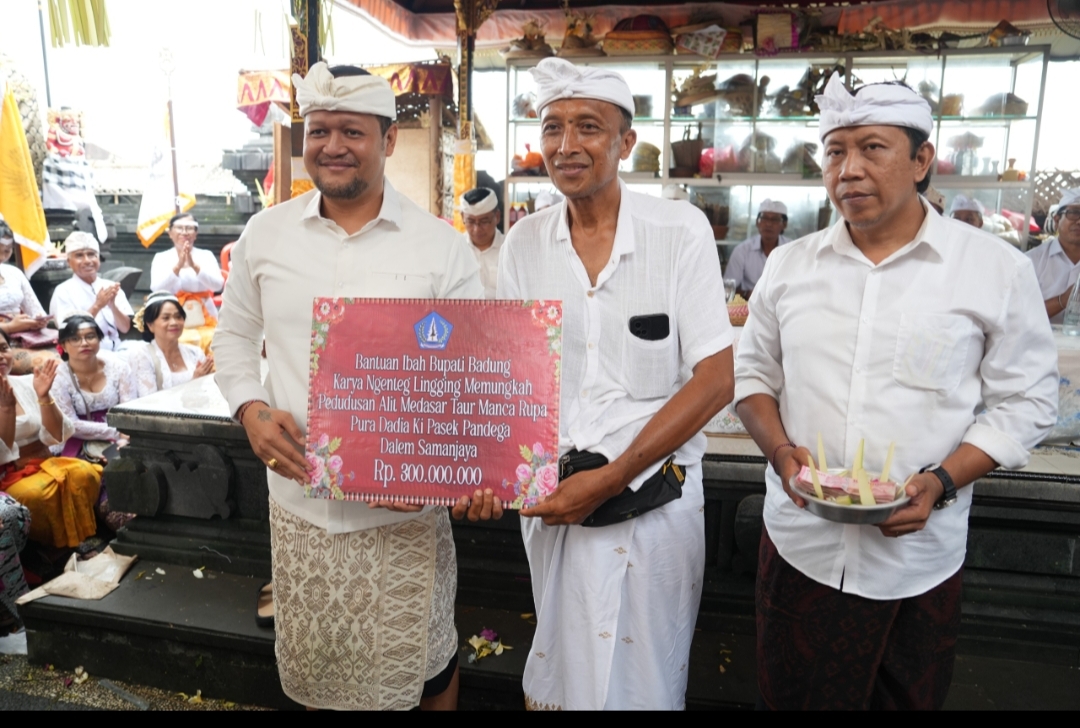 Sebagai bentuk dukungan Pemerintah Kabupaten Badung terhadap kegiatan yadnya tersebut, Wabup Bagus Alit Sucipta secara simbolis menyerahkan bantuan dana Rp300 juta diterima Manggala Karya, I Nyoman Gede Kresna Yudiasa.