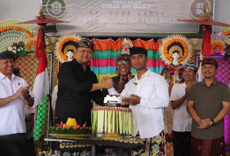 Sebagai bentuk apresiasi dan dukungan terhadap pelaksanaan Festival Lomba Tari se-Bali, Wabup Bagus Alit Sucipta menyerahkan bantuan dana Rp30 juta serta Rp20 juta untuk kegiatan HUT STT Suka Karya.