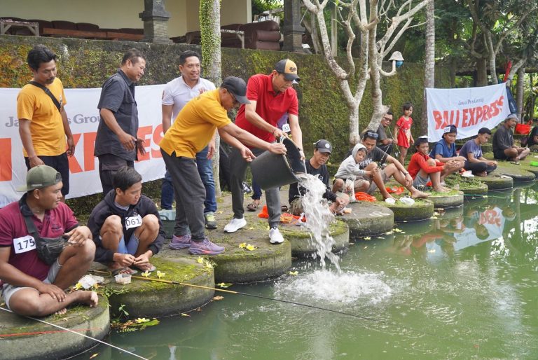 SEMARAPURA, FORUMKEADILANBali.com – Wakil Bupati Klungkung, Tjokorda Gde Surya Putra bersama Anggota DPRD Klungkung I Wayan Buda Parwata membuka Lomba Mancing Express di Kolam Pancing Nirmala Lepang, Kecamatan Banjarangkan, Minggu (21/9/2025).