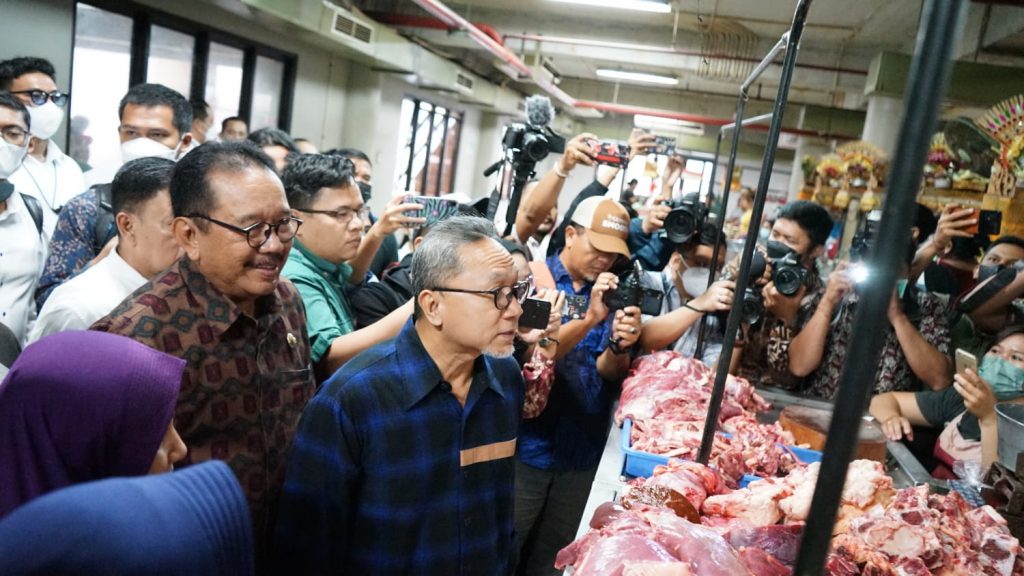 Mendag Zulkifli Hasan mengakui jenis daging tertentu seperti daging kambing cukup mahal karena pemerintah masih menerapkan aturan ketat untuk mencegah meluasnya penyebaran Penyakit Mulut dan Kuku (PMK). ”Masuknya kambing dari Jawa masih kita perketat, karena pemerintah ekstra hati-hati menyikapi PMK. Bali ini kan masih relatif aman, jangan sampai satwa dengan PMK masuk ke sini. Karena penularannya dengan berbagai cara, bisa dari satwanya langsung atau melalui kita. Jadi harus bersabar dulu,” ucapnya Mendag ZulkifliHasan menanggapi keluhan seorang penjual daging kambing.
