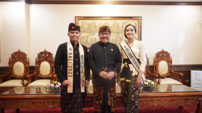 FORUM Keadilan Bali – Wakil Gubernur Bali, Tjokorda Oka Artha Ardana Sukawati menerima audiensi Mr. and Miss Grand Tourism Bali 2022, I Gede Santika Yasa dan Ketut Kamisa Gutami di Ruang Tamu Wakil Gubernur Bali, Kamis (16/2).