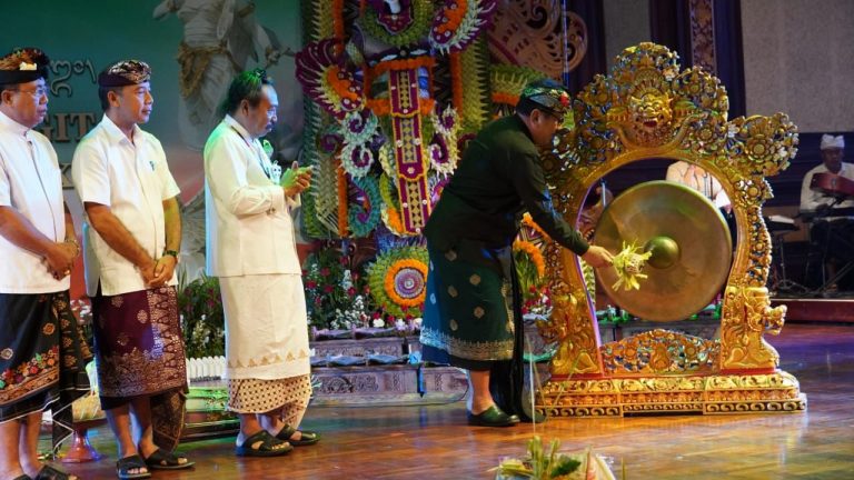 FORUM Keadilan Bali – Wakil Gubernur Bali, Tjokorda Oka Artha Ardana Sukawati membuka dengan pemukulan gong Utsawa Dharmagita Provinsi Bali XXX 2022, di Gedung Ksirarnawa Taman Budaya Denpasar, Senin (12/9).