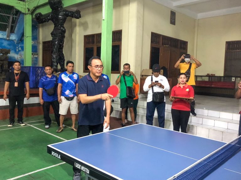 FORUM Keadilan Bali – Wali Kota Denpasar IGN Jaya Negara membuka Turnamen Tenis Meja Antar Dusun Desa Dauh Puri Kauh, Kota Denpasar di Balai Banjar Beraban, Sabtu (3/12).