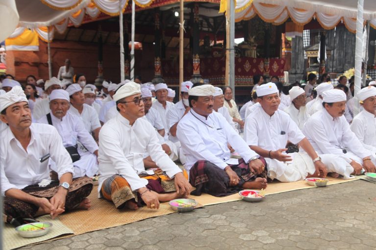 FORUM Keadilan Bali – Wali Kota Denpasar I Gusti Ngurah Jaya Negara bersama Ketua DPRD Kota Denpasar I Gusti Ngurah Gede menghadiri upacara pamelaspas Gedong Ratu dan tembok panyengker Pura Puseh Desa Adat Sumerta, Minggu (4/9).