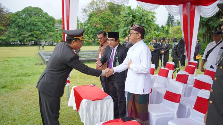 FORUM Keadilan Bali – Wali Kota Denpasar I Gusti Ngurah Jaya Negara bersama Sekretaris Daerah Kota Denpasar I.B Alit Wiradana menghadiri upacara Apel peringatan HUT Bhayangkara ke-77 di Lapangan Puputan Badung I Gusti Ngurah Made Agung pada Selasa, (1/7).