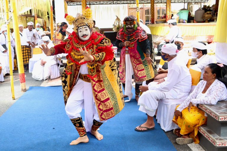 FORUM Keadilan Bali – Bertepatan Soma Pon Sinta, Wali Kota Denpasar IGN Jaya Negara ngayah masolah Topeng Arsa Wijaya serangkaian Karya Tawur Agung Nilapati, Ngenteg Linggih dan Padudusan Agung Menawa Ratna, Nyurud Ayu serta Metatah di Pura Batur Puncak Sari, Banjar Pengukuh Peraupan, Desa Peguyangan Kangin, Senin (24/10).