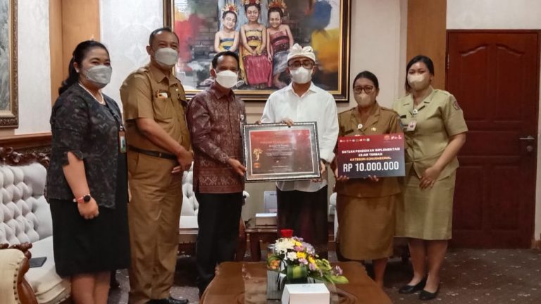 FORUM Keadilan Bali – Wali Kota Denpasar IGN Jaya Negara menyaksikan penyerahan penghargaan Kejar Award 2022 kepada SDN 3 Sesetan sebagai Satuan Pendidikan Implementasi Kejar Terbaik Mitra Kerjasama Bank BPD Bali, di Ruang Tamu Walikota Denpasar, Senin (29/8).