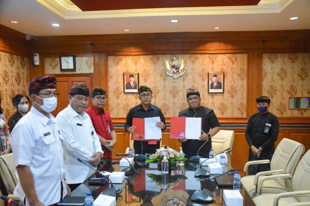 Penandatanganan MoU dengan General Manager Bali Power Generation Unit, Flavianus Erwin Putranto disaksikan Wakil Walikota Denpasar Kadek Agus Arya Wibawa dan Sekda Kota Denpasar, IB Alit Wiradana.