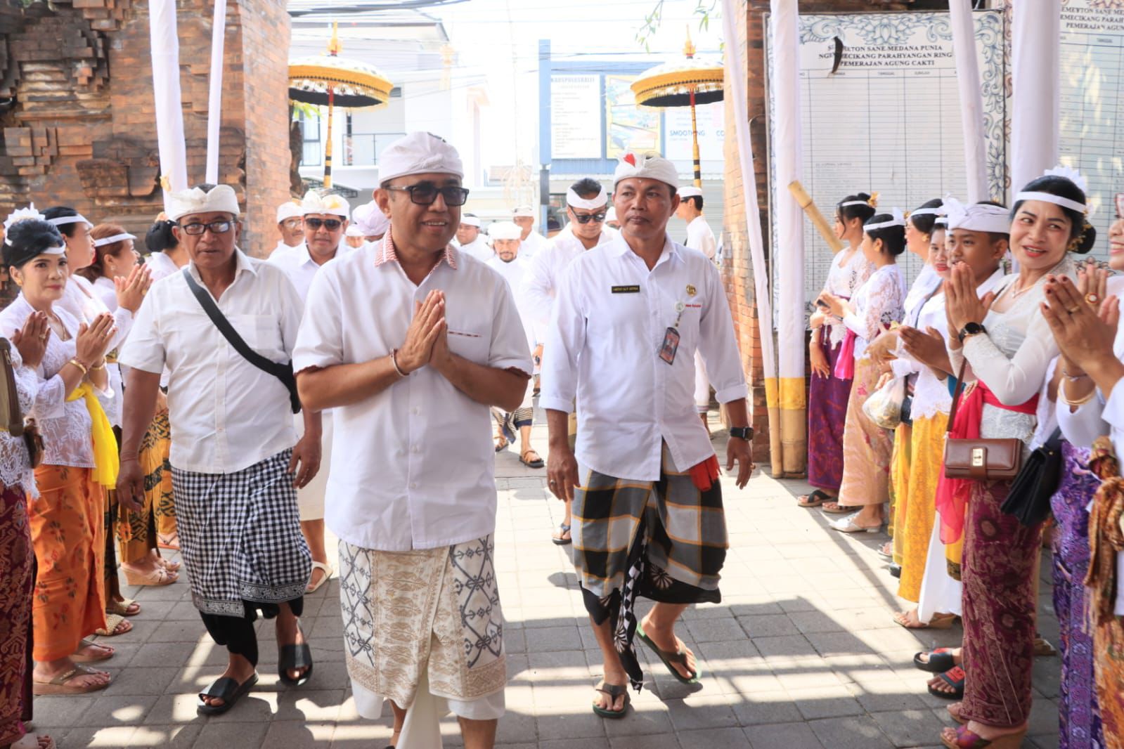 Walikota Jaya Negara melaksanakan persembahyangan bersama dan menyerahkan punia sebagai bentuk sradha bhakti dan dukungan terhadap pelaksanaan yadnya.