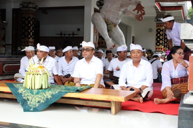 FORUM Keadilan Bali – Walikota Denpasar I Gusti Ngurah Jaya Negara menghadiri upacara Pamelaspasan Gedong dan Tajuk Ngurah Tanjung di Banjar Gunung, Desa Adat Bekul, Penatih Dangin Puri, Minggu (4/2).