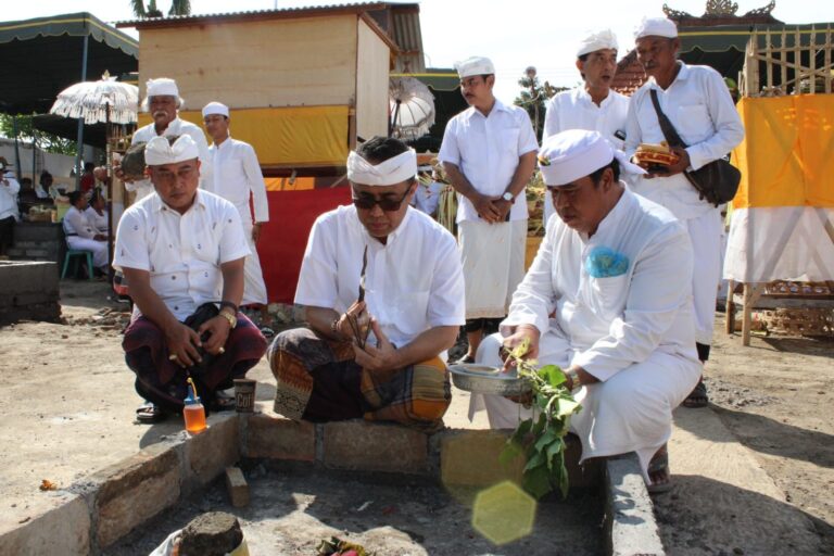 FORUM Keadilan Bali – Serangkaian perbaikan Pura Dalem Ulun Lencana, Desa Adat Kerobokan, Desa Padangsambian Kelod, Walikota Denpasar I Gusti Ngurah Jaya Negara mendem dasar bertepatan Rahina Kajeng Kliwon Uwudan, Selasa (9/1).