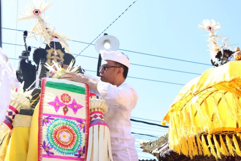 FORUM Keadilan Bali – Walikota Denpasar I Gusti Ngurah Jaya Negara menghadiri Karya Tawur Wrespati Kalpa Madya, Mamungkah, Ngenteg Linggih, Mupuk Pedagingan dan Padudusan Alit di Pura Pasek Gelgel Pegatepan Prasanak Dalem Tibung Desa Adat Padangsambian, Selasa (8/8).