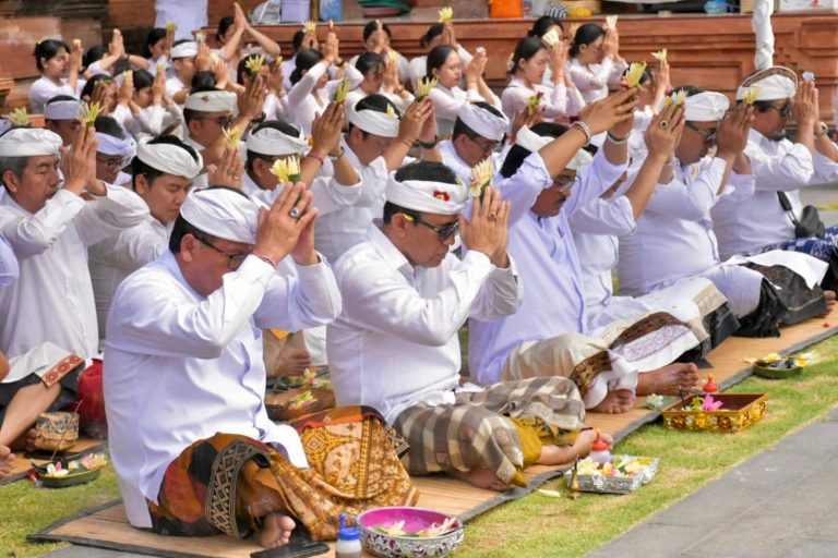 DENPASAR, FORUMKEADILANBali.com – Pemerintah Kota Denpasar melaksanakan persembahyangan bersama serangkaian Hari Suci Saraswati di Pura Agung Jagatnatha Kota Denpasar pada Saniscara Umanis Wuku Watugunung, Sabtu (6/9/2025).
