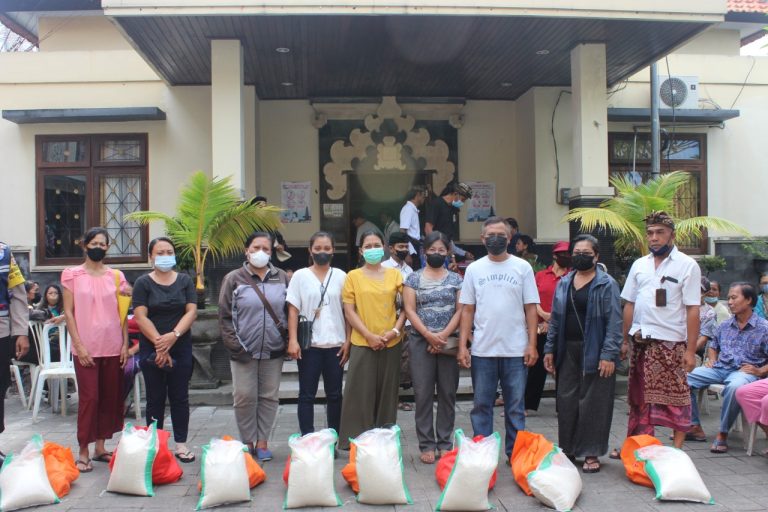 FORUM Keadilan Bali – Kelurahan Peguyangan, Denpasar Utara menyerahkan 150 paket bantuan sembako kepada warga terdampak inflasi dan kenaikan BBM, Kamis (1/12).