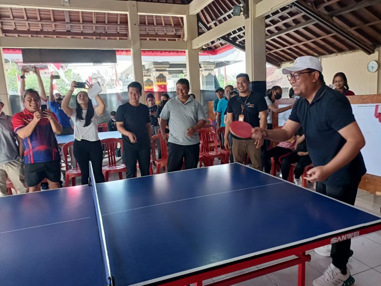 FORUM Keadilan Bali – Menyambut HUT ke-77 Kemerdekaan RI, Wakil Walikota Denpasar I Kadek Agus Arya Wibawa membuka Kejuaraan Tenis Meja ST Dharma Satwika di Br. Kebon Kori Mangku, Denpasar Timur, Sabtu (13/08).