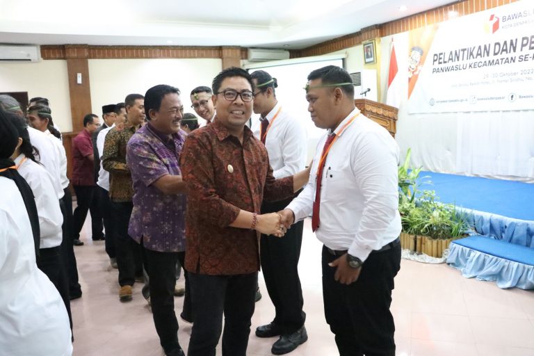 Pwlantikan Panwaslu kecamatan dihadiri Ketua DPRD Kota Denpasar I Gusti Ngurah Gede, Ketua KPU Denpasar I Wayan Arsa Jaya, Ketua Bawaslu Kota Denpasar Putu Arnata, Camat se-kota Denpasar dan unsur terkait lainya.
