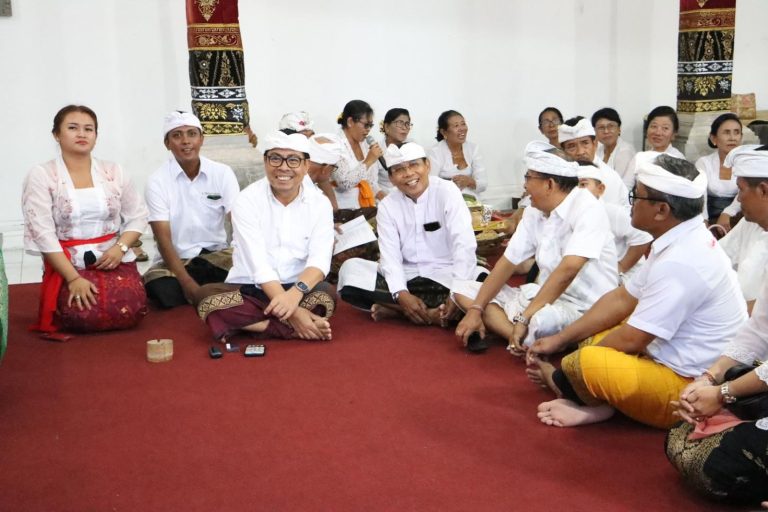 DENPASAR, FORUMKEADILANBali.com –Wakil Walikota Denpasar, I Kadek Agus Arya Wibawa menghadiri upacara piodalan di Pura Banjar Tengah, Desa Adat Ubung, Denpasar Utara bertepatan Rahina Anggara Kliwon Julungwangi, Selasa (8/4/2025).