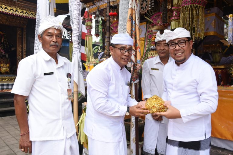 FORUM Keadilan Bali – Wakil Walikota Denpasar Kadek Agus Arya Wibawa bersama Sekretaris Daerah (Sekda) Kota Denpasar IB Alit Wiradana menghadiri upacara patirtan di Pura Dalem Penataran Desa Adat Sumerta, Denpasar Timur bertepatan Tilem Kalima, Rabu (23/11).