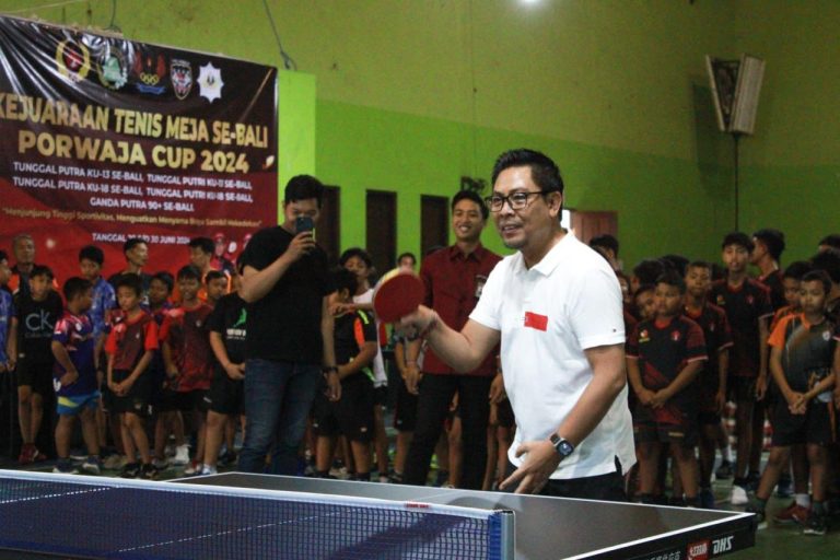 FORUMKEADILANBali.com – Wakil Walikota Denpasar I Kadek Agus Arya Wibawa membuka Kejuaraan Tenis Meja se-Bali Porwaja Cup 2024 di GOR Sarwaguna, Br. Wangaya Kaja, Desa Dauh Puri Kaja, Denpasar Utara, Jumat (28/6).
