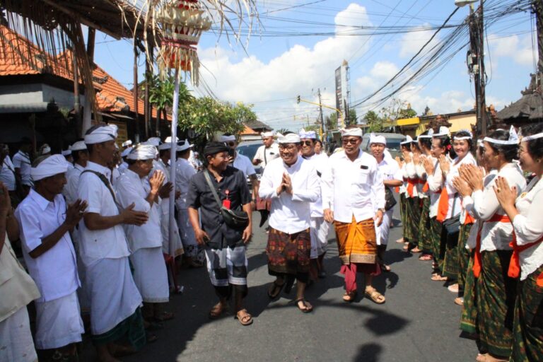 FORUM Keadilan Bali – Wakil Walikota Denpasar I Kadek Agus Arya Wibawa menghadiri upacara Negteg Beras, Ngingsah, Macaru Eka Sata dan Ngadegang Ida Bhatara serangkaian Karya Memungkah, Ngenteg Linggih dan Padudusan Alit Waraspati Kalpa di Banjar Padangsambian, Desa Adat Padangsambian, Denpasar Barat, Senin (29/5).