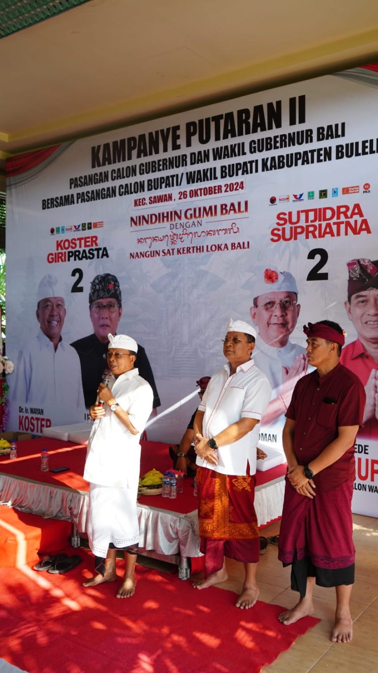 FORUMKEADILANBali.com – Simakrama Calon Gubernur (Cagub) Bali nomor 2 Wayan Koster (Koster-Giri) disambut antusias ribuan warga Desa Sangsit, Kecamatan Sawan, Buleleng pada 25 Oktober 2024.