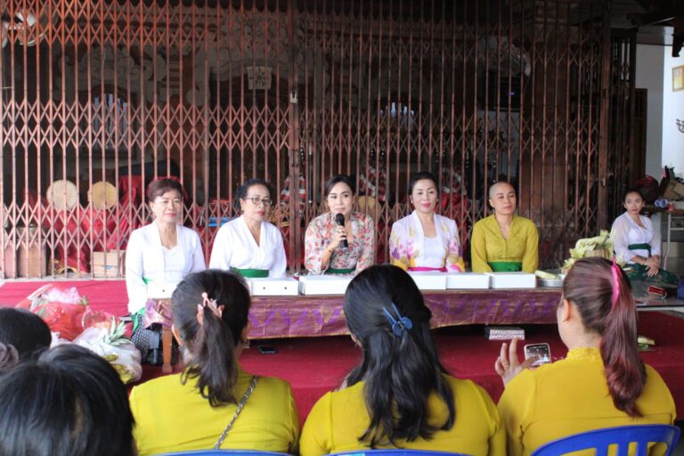 FORUM Keadilan Bali – Meningkatkan pemahaman dan filosofi makna upakara bagi masyarakat sesuai sastra, Wanita Hindu Dharma Indonesia (WHDI) Kota Denpasar kembali menggelar pelatihan membuat banten “Ayaban Tumpeng Pitu” di Banjar Meranga Desa Kesiman Petilan, Denpasar Timur dibuka Wakil Ketua WHDI Kota Denpasar Ny. Ayu Kristi Arya Wibawa, Minggu (5/3).